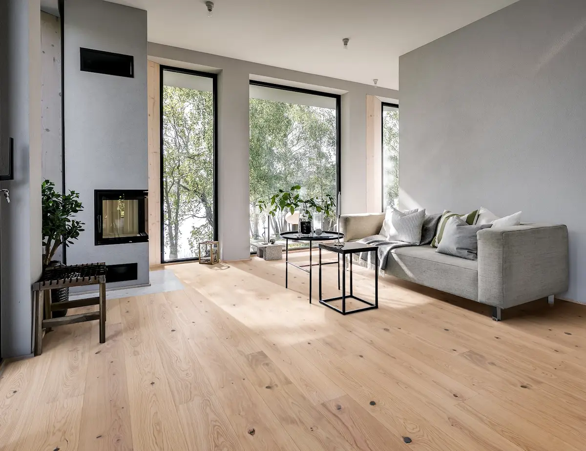 Ostateczny wygląd i charakter podłogi zależy od wykończenia powierzchni. Kährs oferuje kilka opcji. Lakier jedwabiście matowy nadaje powierzchni gładkość, lakier ultramatowy sprawia, że podłoga wygląda jak surowe drewno, a olej naturalny nadaje jej pięknie naturalne, ciepłe wyczucie.