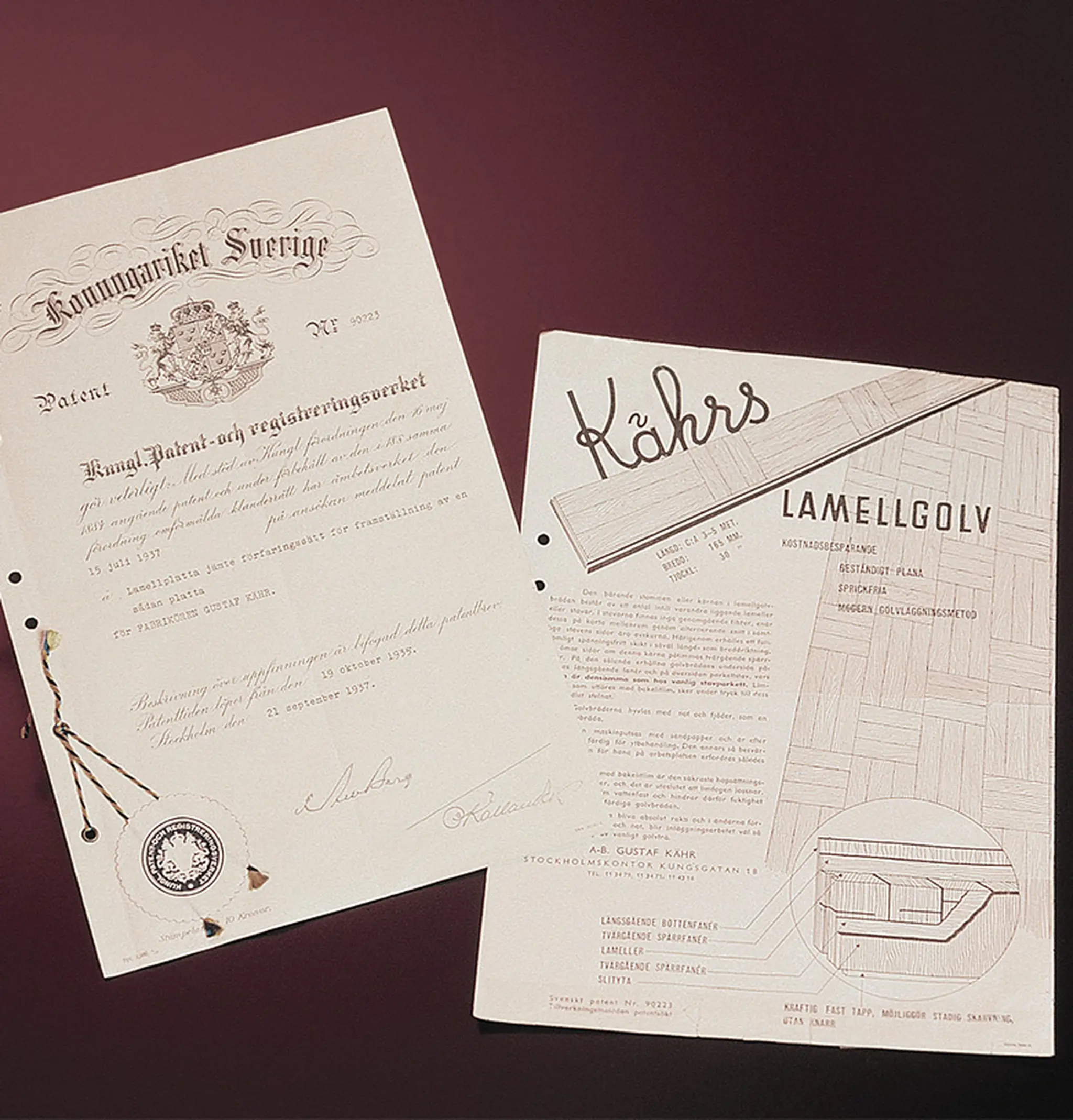 W 1941 roku Kährs otrzymał patent na wielowarstwową konstrukcję podłogi drewnianej – pierwszą na świecie podłogę warstwową (engineered wood floor). Taka budowa sprawia, że podłoga pozostaje stabilna mimo sezonowych zmian wilgotności.