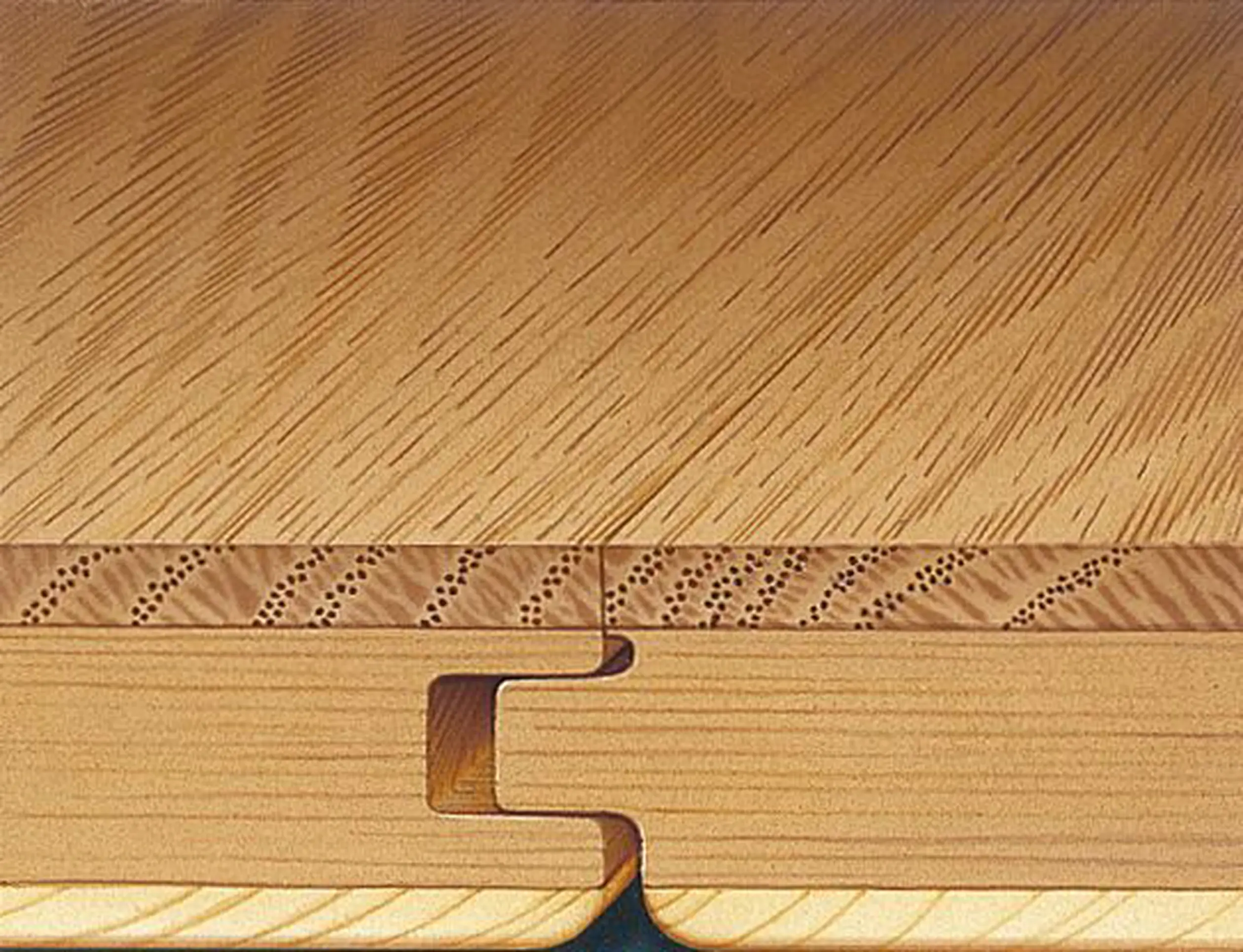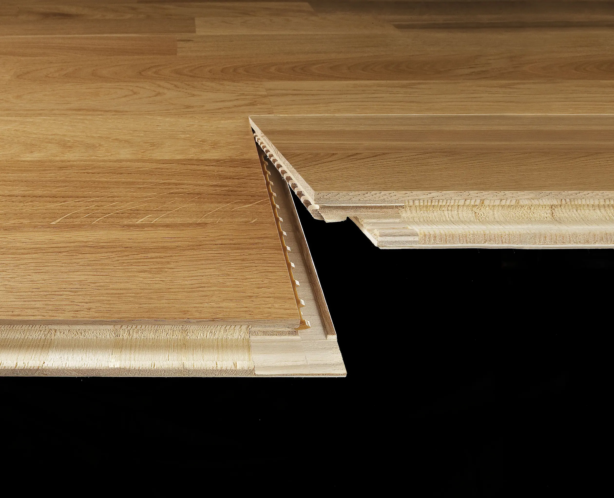 To tradycyjna konstrukcja piór i wpustów, która wymaga użycia kleju podczas montażu. Po zamontowaniu klej musi wyschnąć, zanim podłoga będzie gotowa do użytku.