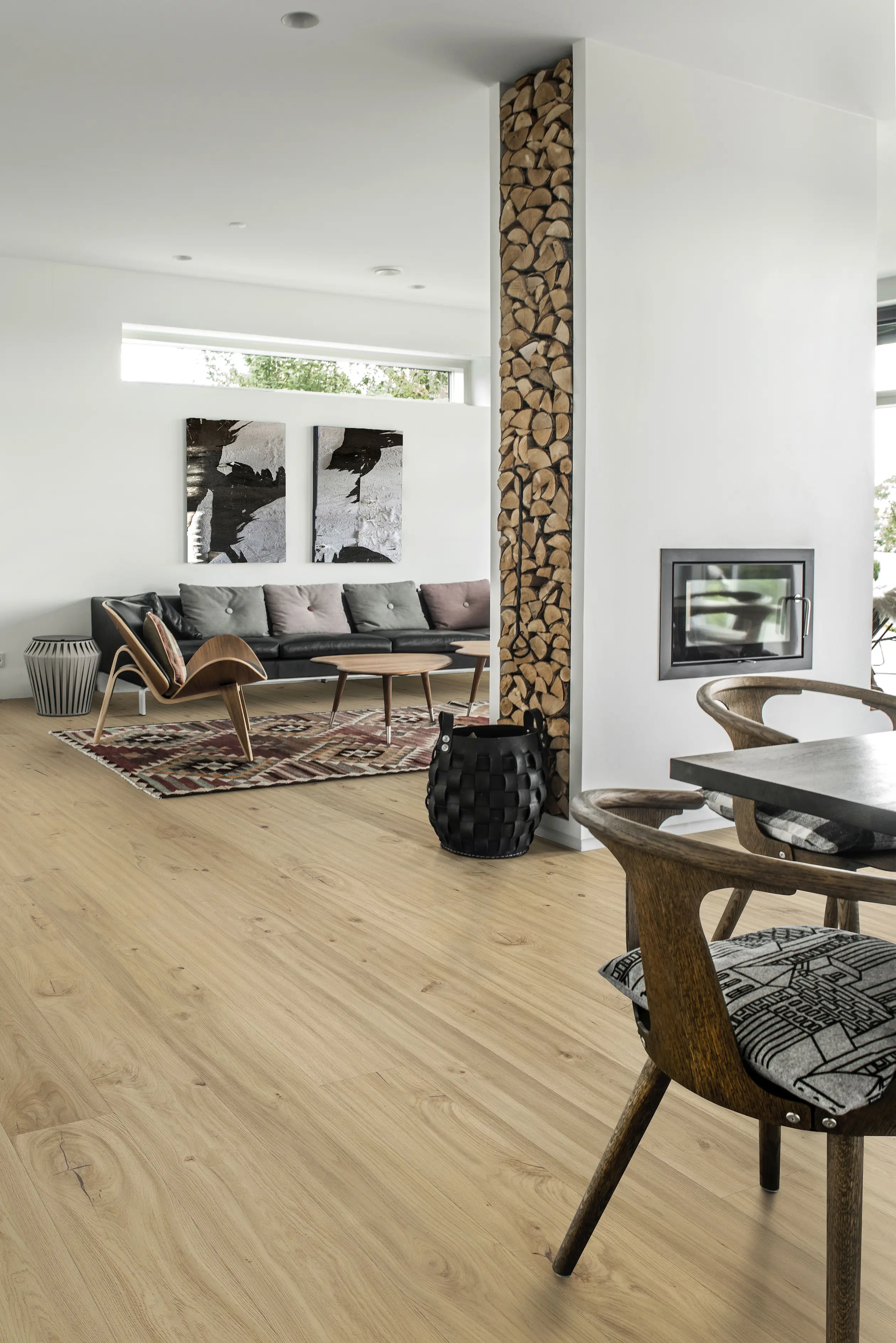 Podłogi dębowe są trwałe, pełne charakteru i niezwykle różnorodne dzięki szerokiej gamie wykończenia oraz kolorów. Nawet po obróbce zachowują naturalne piękno i rysunek słojów.