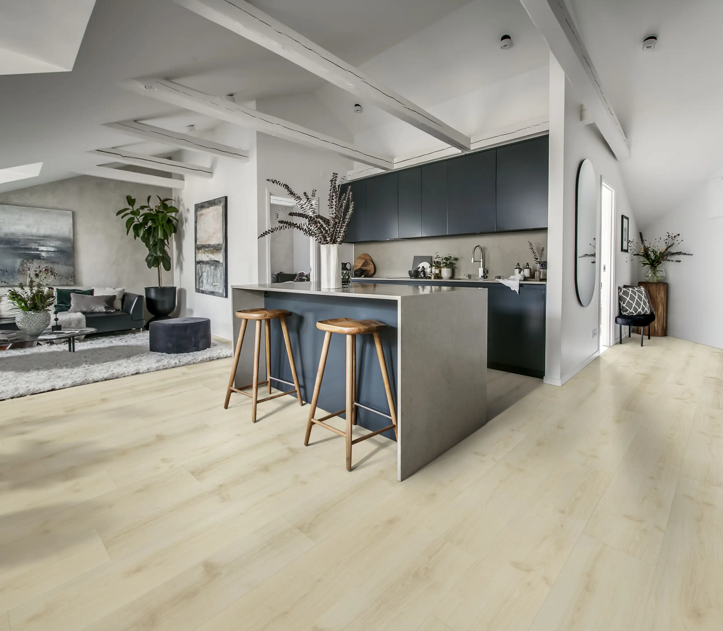 Ciesz się podłogami Kährs Luxury Tiles dłużej, zapewniając im odpowiednią pielęgnację. W ruchliwych pomieszczeniach ponad 85% zabrudzeń pochodzi z zewnątrz — maty wejściowe stanowią pierwszą linię obrony. Zachowaj piękno podłogi, podnosząc meble zamiast przeciągać je po podłodze i stosując w razie potrzeby pokrowce ochronne. W przypadku podłóg w jasnych kolorach wystarczy poświęcić im nieco więcej uwagi i delikatnie je czyścić, aby zachowały świeżość jak w dniu montażu.